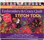 .Judith Baker Montanos Embroidery & Crazy Quilt Stitch Guide and features 180 stitches and combinations for hand embroidery, silk ribbon embroidery, and crazy quilting.It is small and compact and comes with left and right hand illustrations in a handy stand-up format. You can order the Stitch Tool from me by going to Books and DVDs section.